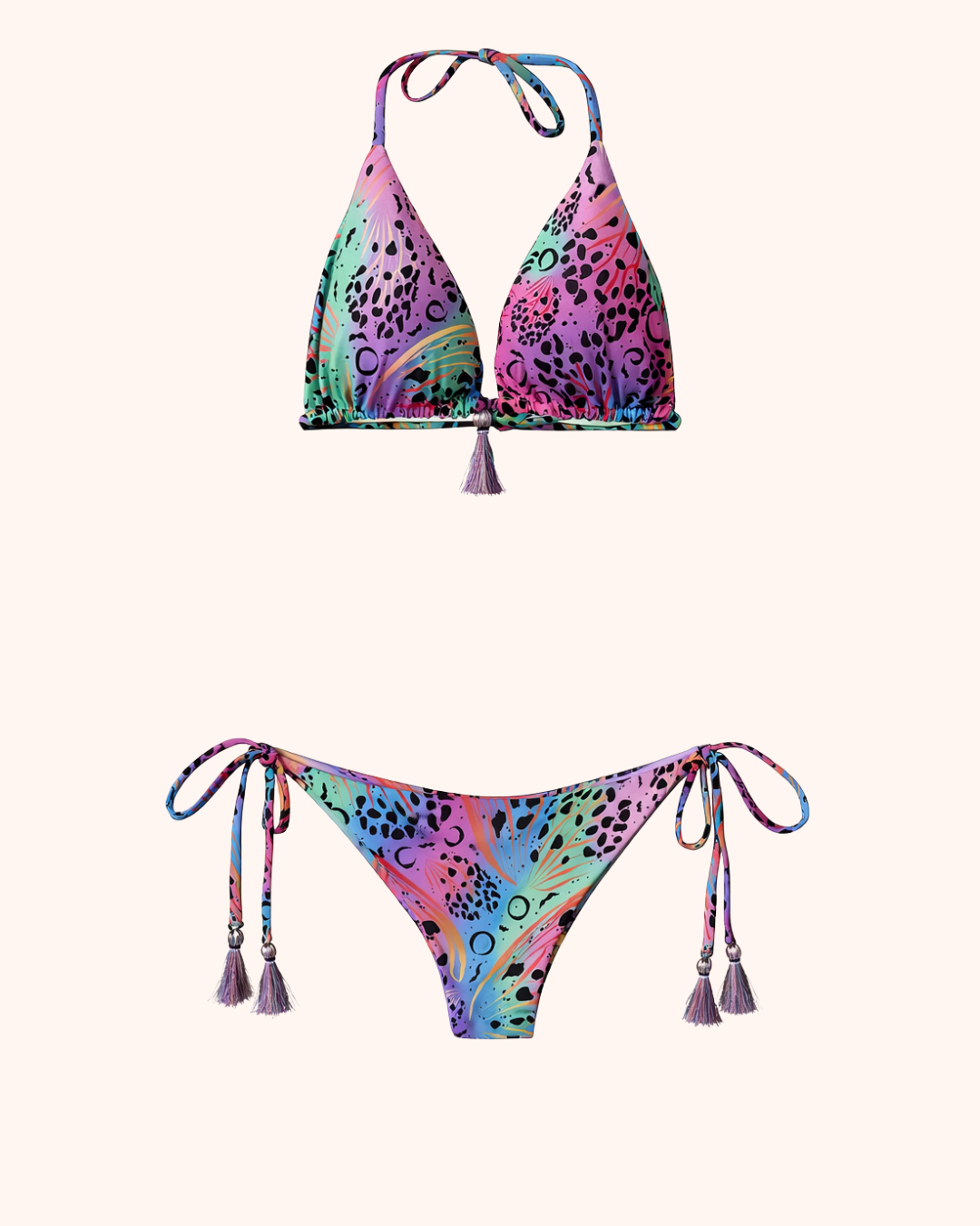 Tropika flips from vibrant tropical print to soft lilac serenity — giving you two completely different energies in one reversible set.