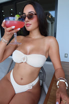 Turn up the heat with Rosita — a bandeau bikini with delicate rosette accents that serve soft romance with a flirty twist. The textured fabric hugs in all the right places, while the high-cut Brazilian bottom elongates your legs and boosts the sass. Wear it strapless for tan-line freedom or tie it up for extra support. From cocktails to coastline, she’s your spicy summer essential.
