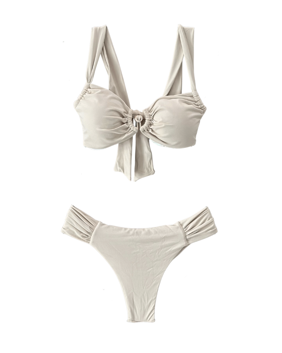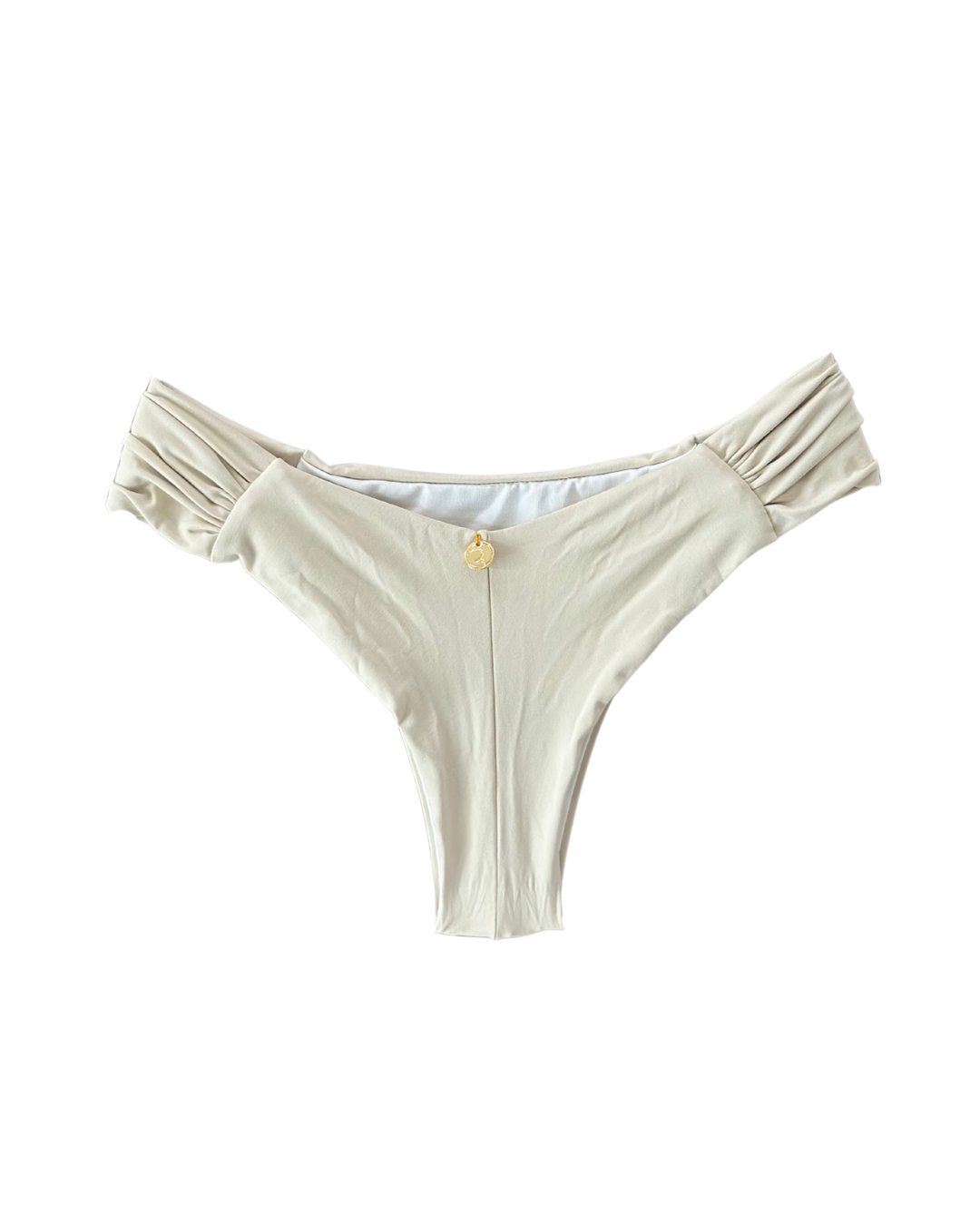 • Mid-rise cheeky bottoms with ruched sides