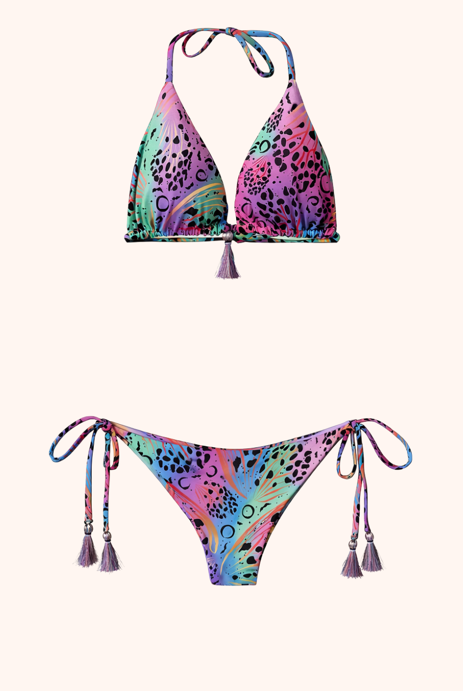 Tropika flips from vibrant tropical print to soft lilac serenity — giving you two completely different energies in one reversible set.
