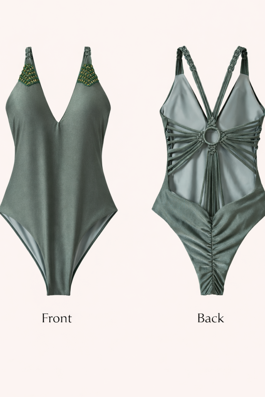 - Thong bottom with scrunch back for a flattering fit